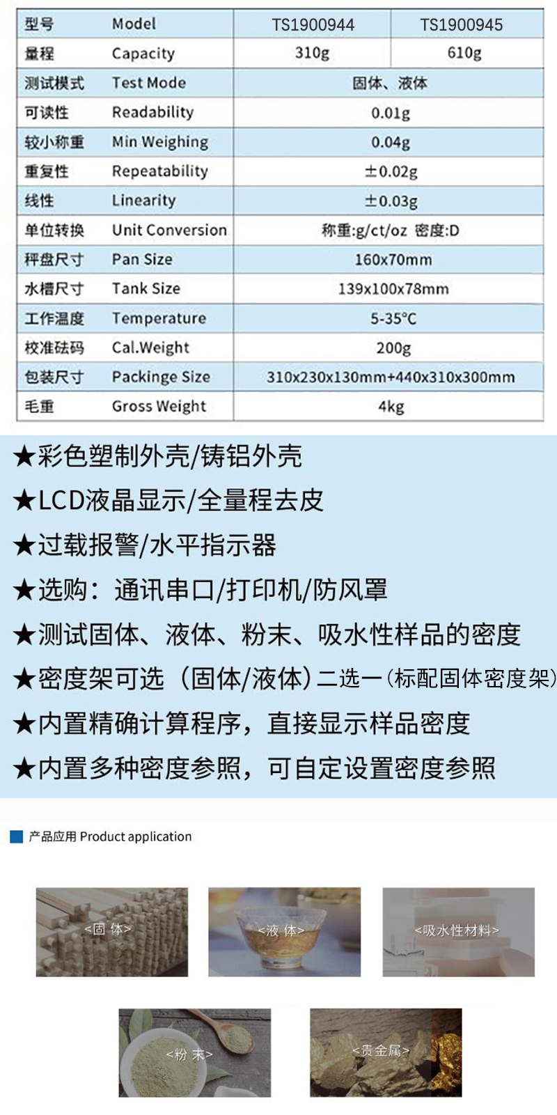 ·密度架可选(固体/液体)