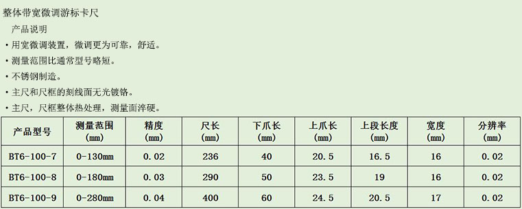 整体带宽微调游标卡尺