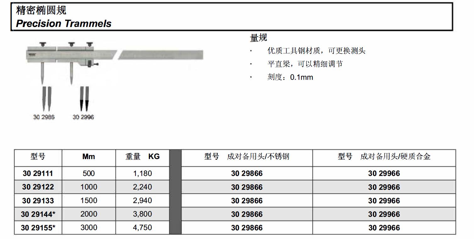 ·优质工具钢材质.可 更换测头平直梁. 可以精 细调节 ·刻度: 0.1mm