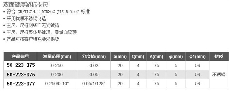 双面壁厚游标卡尺