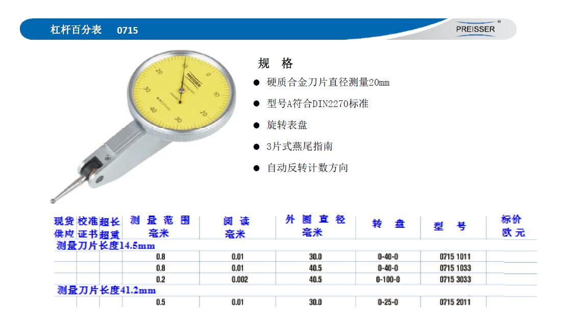·硬质合金刀片直径测量20mm ·型号A符合DIN2270标准 ·旋转表盘 ·3片式燕尾指南 ·自动反转计数方向