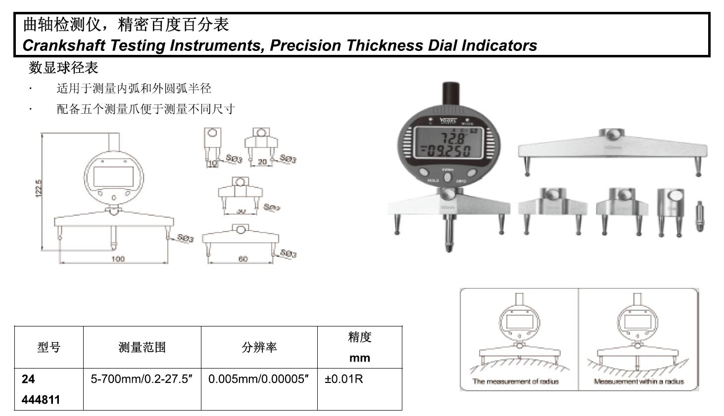 ·适用于测量内弧和外圆弧半径 ·配备五个测量爪便于测量不同尺寸