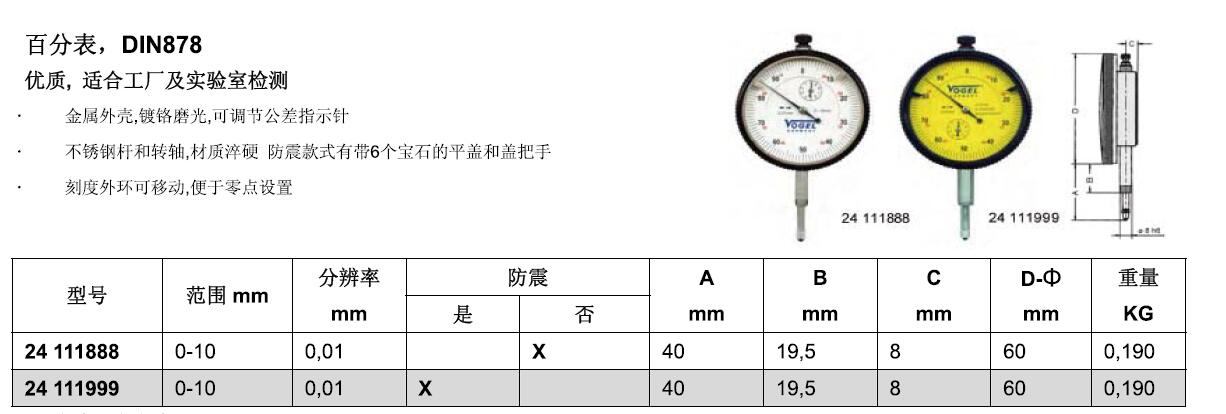 ·金属外壳·镀铬磨光·可调节公差指示针 ·不锈钢杆和转轴·材质淬硬防震款式有带6个宝石的平盖和盖把手 ·刭度外环可移动·便于零点设置