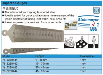 ·由弹簧回火钢制造 ·非常适合快速,准确地测量 ·油管内径,槽口宽度,孔尺寸等 ·激光雕刻刻度,以1mm为增量。