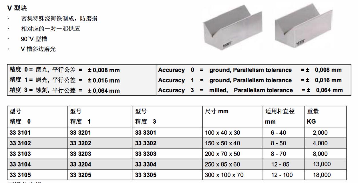 ·密集特殊浇铸铁制成. 防磨损相对应的一对一起供应 ·4个不同大小的V型goo槽V型槽斜边磨光
