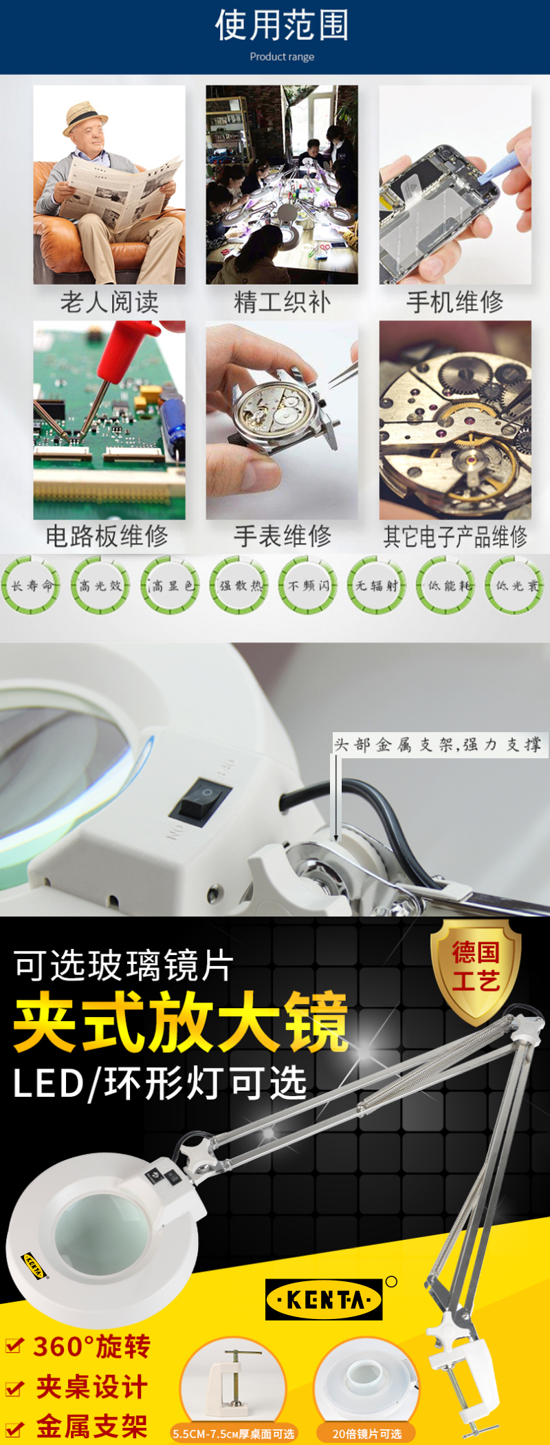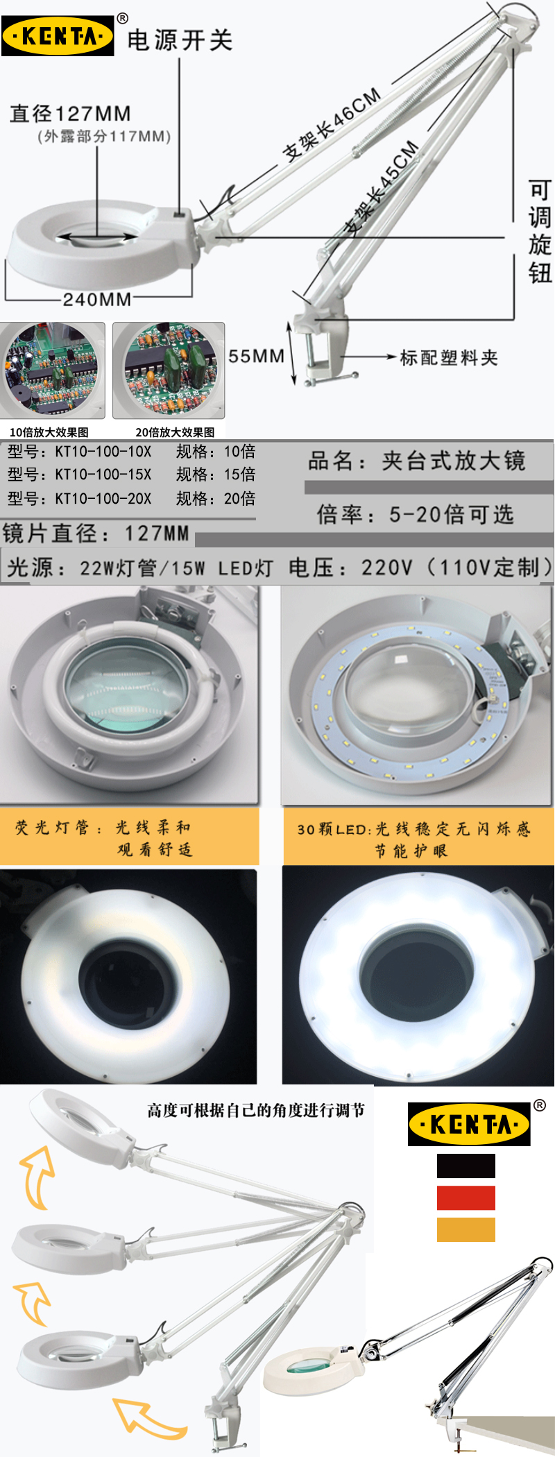 夹式放大镜LED灯台灯夹台式维修放大镜检测镜焊接检查