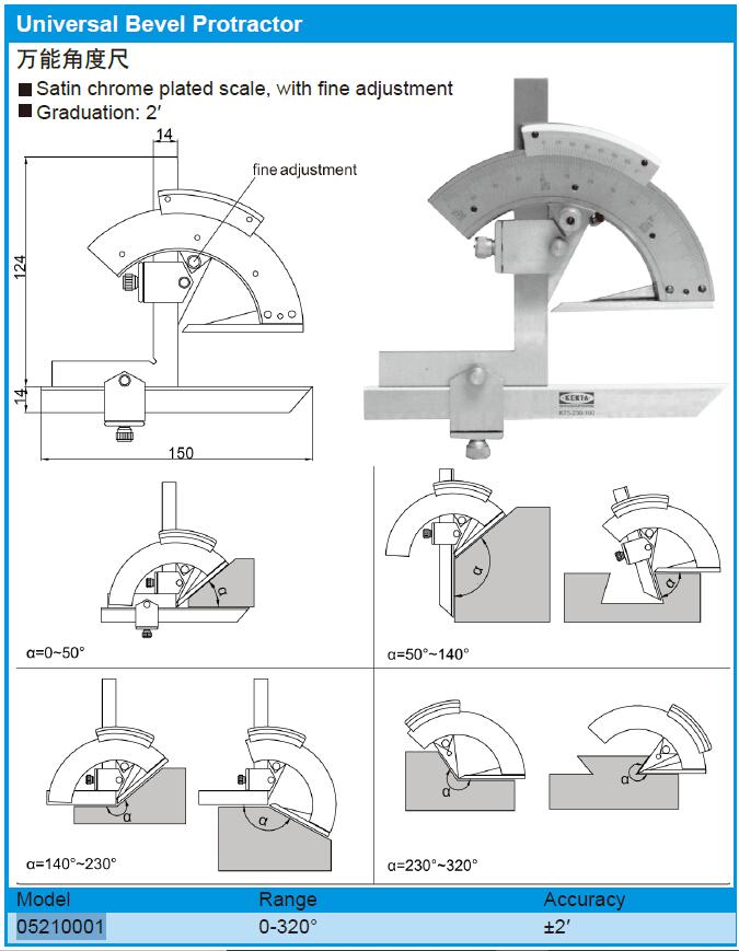 万能角度尺 005210001 0~320° 1把