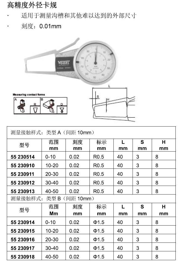 ?适用于测量沟槽和其他难以达到的外部尺寸