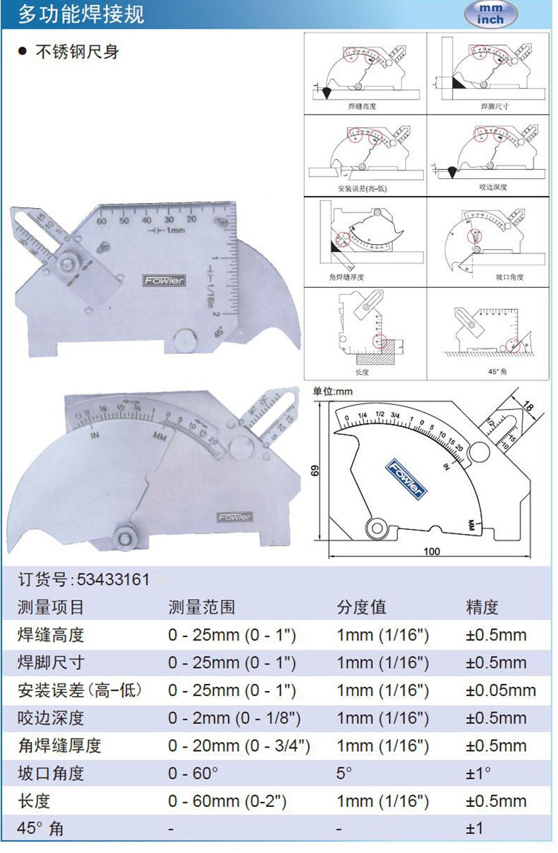 FOWLER 不锈钢多功能焊接规 53433161 0-25mm