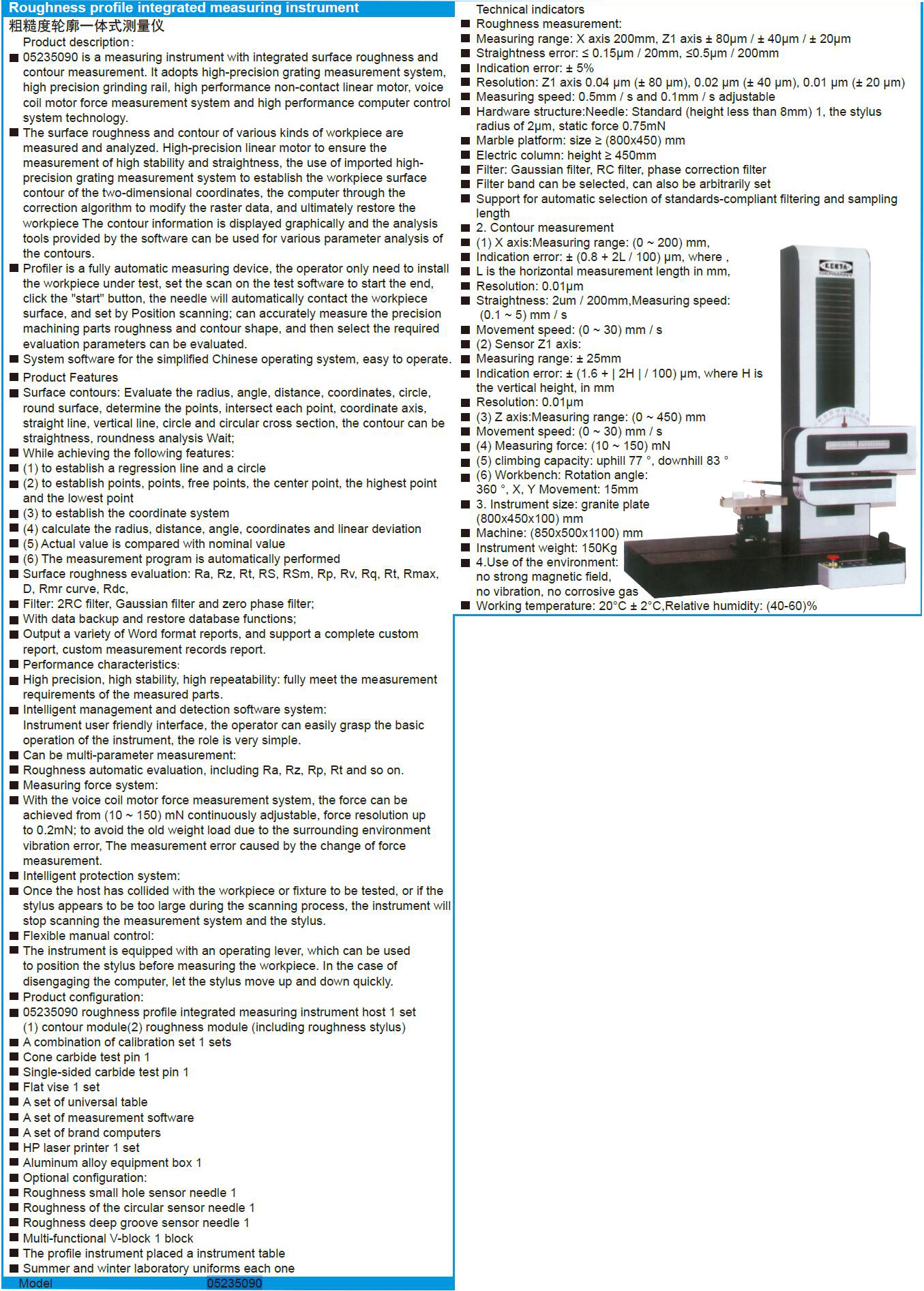 粗糙度轮廓一体式测量仪 005235090 850×500×1100mm 1台