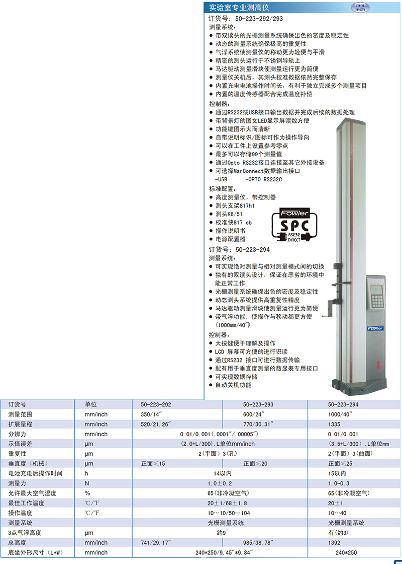 A67415 50-223-294 1000 40" 0.01 0.001 (3.5+L 300),L单位mm 2(平面)3(曲面)μm 正面≤25 光栅测量系统 1.0-0.3N LCD 可数据存储 240*250mm 1335mm 正面≤25μm 65(非冷凝空气)% 20±1℃/℉ 10…40℃/℉ 有(约3μm) 238515.00