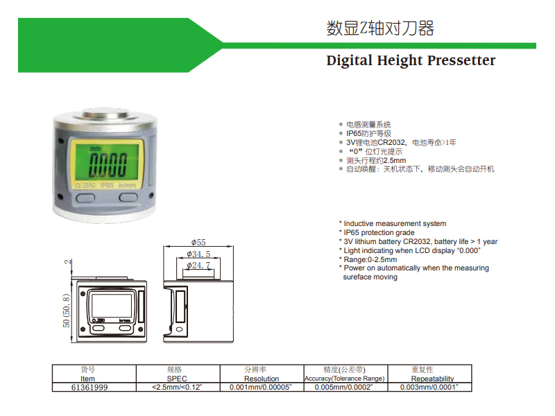 防水防尘高精度数显Z轴对刀器