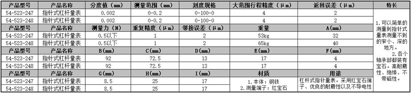 ·杠杆式指针量表 ·本体:钢铁,测量端子:红宝石 ·可以简单的测量到指针式量表测量不到的窄小,深的地方 ·各个轴承部都装有宝石
