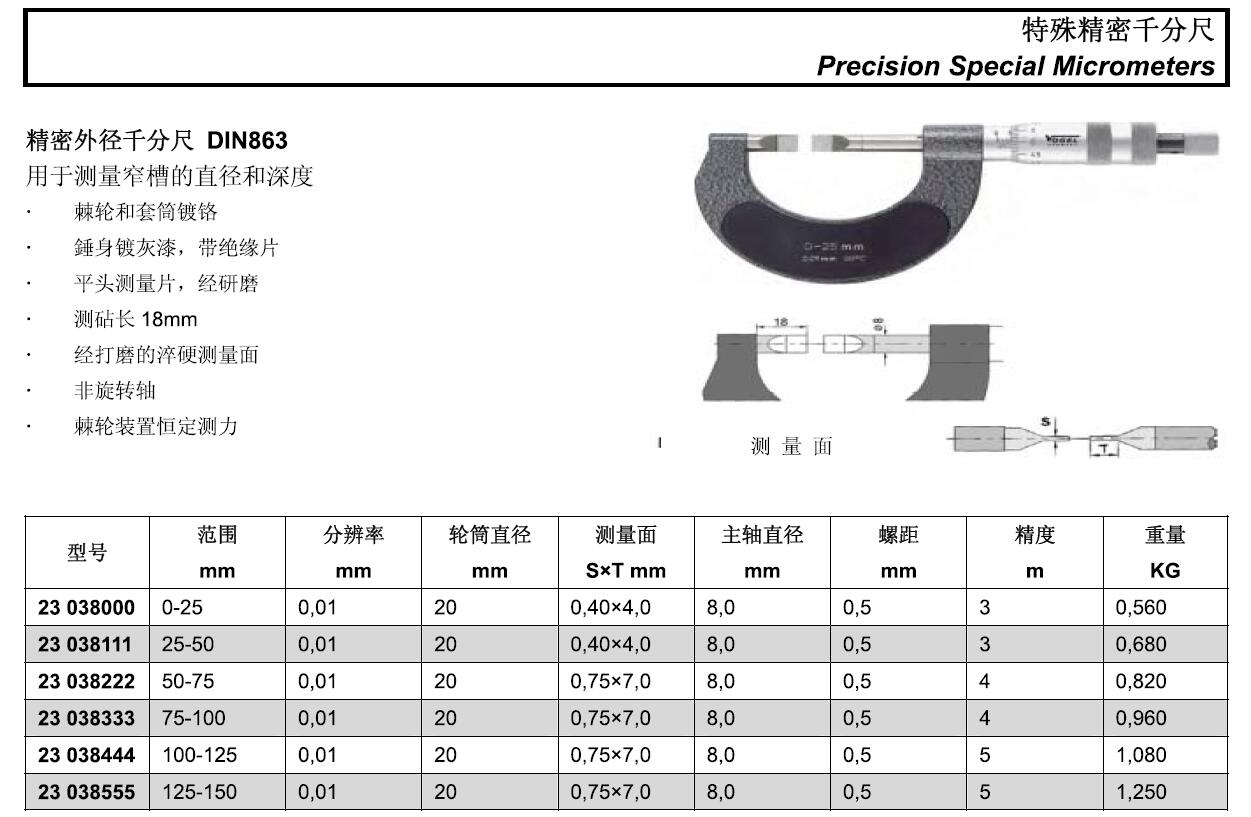 ·棘轮和套筒镀铬,錘身镀灰漆、带绝缘片 ·平头测量片,经研磨;经打磨的淬硬测量面 ·测砧长18mm ·非旋转轴 ·棘轮装置恒定测力