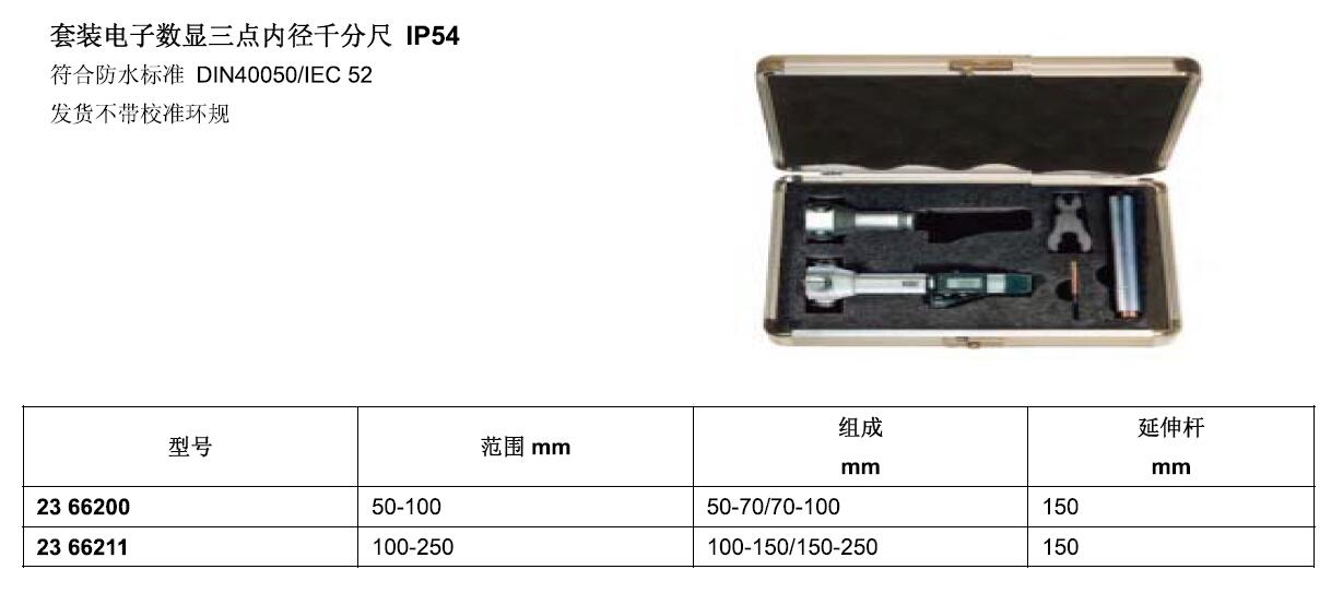 ·套装电子数显三点内径千分尺 IP54 符合防水标准DIN40050/IEC 52 ·发货不带校准环规