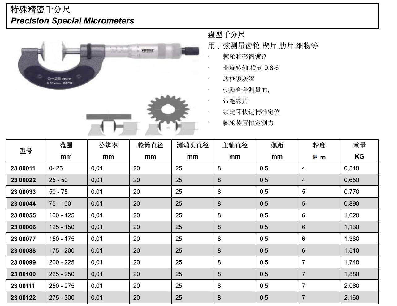 订货号 制造商型号 测量范围 分度值 精度 喉深 测量盘直径 盘片厚度 价格 购物车