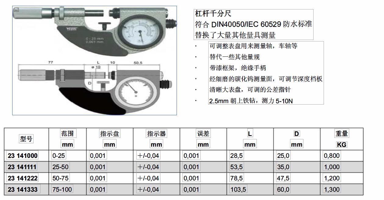 ·可调整表盘用来测量轴,车轴等 ·带漆框架,绝缘手柄 ·经细磨的碳化钨测量面,可调节深度档板 ·清晰大表盘,可调的公差指针 ·2·5mm朝上铁钻,测力5-10N