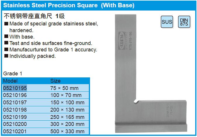 Stainless Steel Inspection Square (With Base)