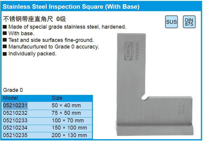 Stainless Steel Inspection Square (With Base)