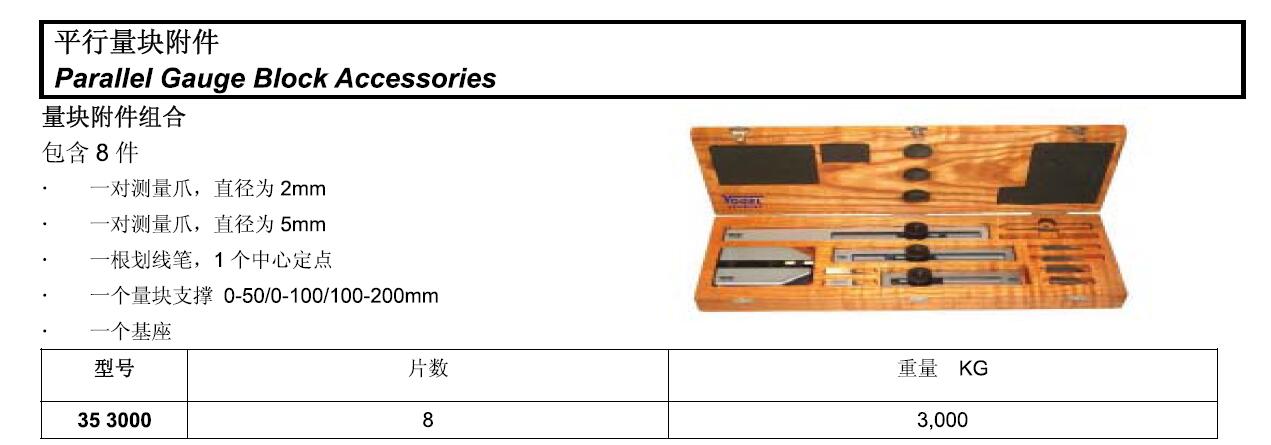·一对测量爪.直径为2mm ·一对测量爪.n径为5mm ·一根划线笔.1个中心定点 ·一个量块支撑0-50/0-100/100-200mm一个基座