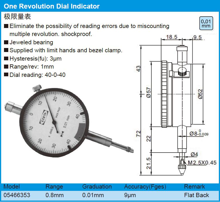 One Reolution Dial Indicator