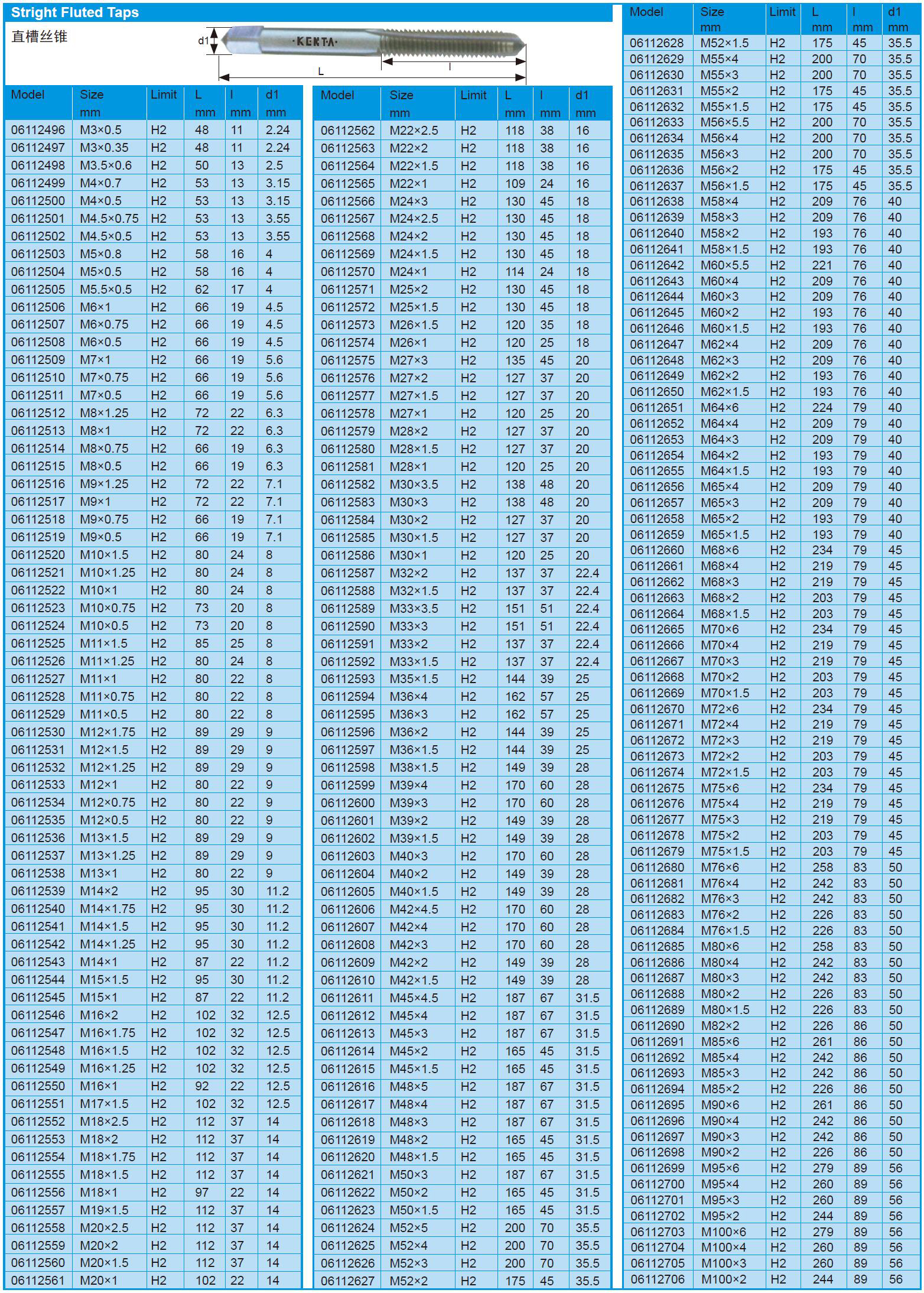 订货号 制造商型号 螺纹标准 总长度 螺距(牙数) 适宜加工材料 导程 精度等级 刀具材质 材质编码 方隼尺寸 夹持直径 价格 购物车