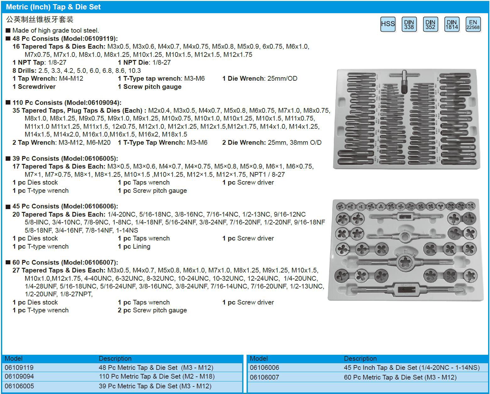 48件套装公制丝锥板牙
