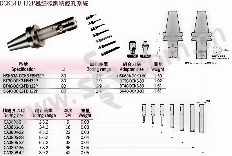 DEREK/德克 DCK3-FBH32P极细微调精镗孔系统 HSK63A-DCK3-FBH32P 1套