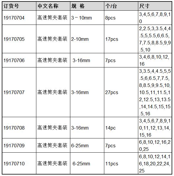 D13016 19170710 6,8,10,12,14,16,18,20,22,24,25 mm 11pcs 3870.00