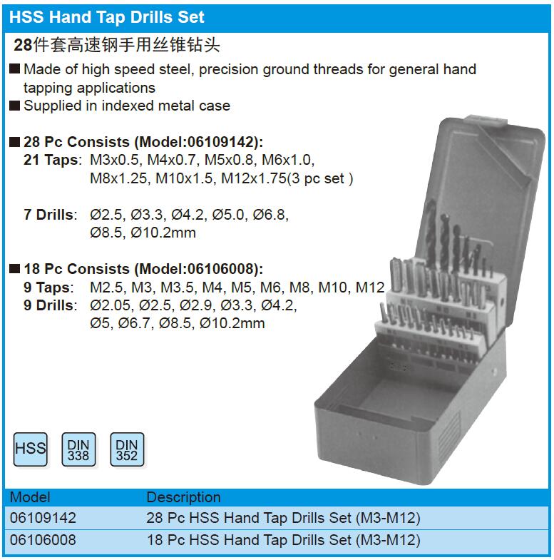 28 Pc HSS Hand Tap Drills Set