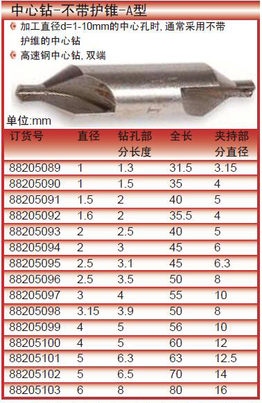 ·加工直径d=1-10mm的中心孔时,通常采用不带护维的中心钻 ·高速钢中心钻,双端