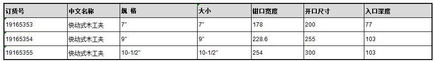 订货号 制造商型号 钳口最大张开尺寸 钳口宽度 钳口深度 钳体长度 最大夹紧力 净重 规 格 价格 购物车