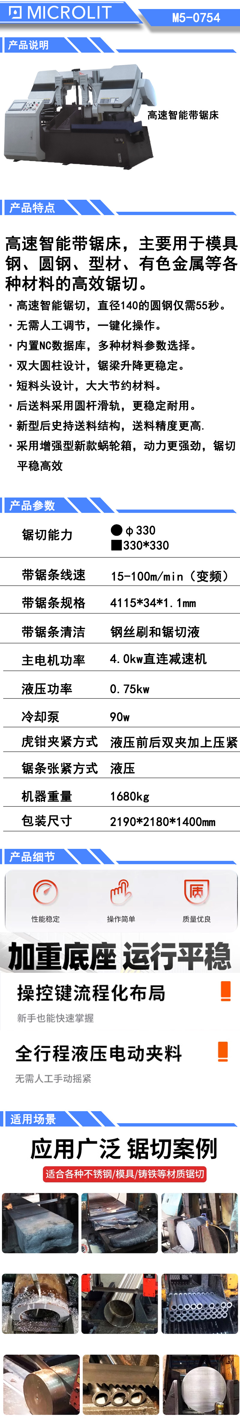 * 高速智能锯切,直径140的圆钢仅需55秒。