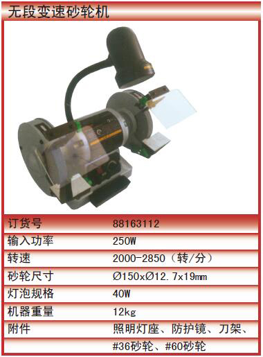 A23648 88163112 250w Ø150xØ12.7x19mm 2000-2850(转/分) 照明灯座、防护镜、刀架、 #36砂轮、#60砂轮 12kg 40W 1820.00
