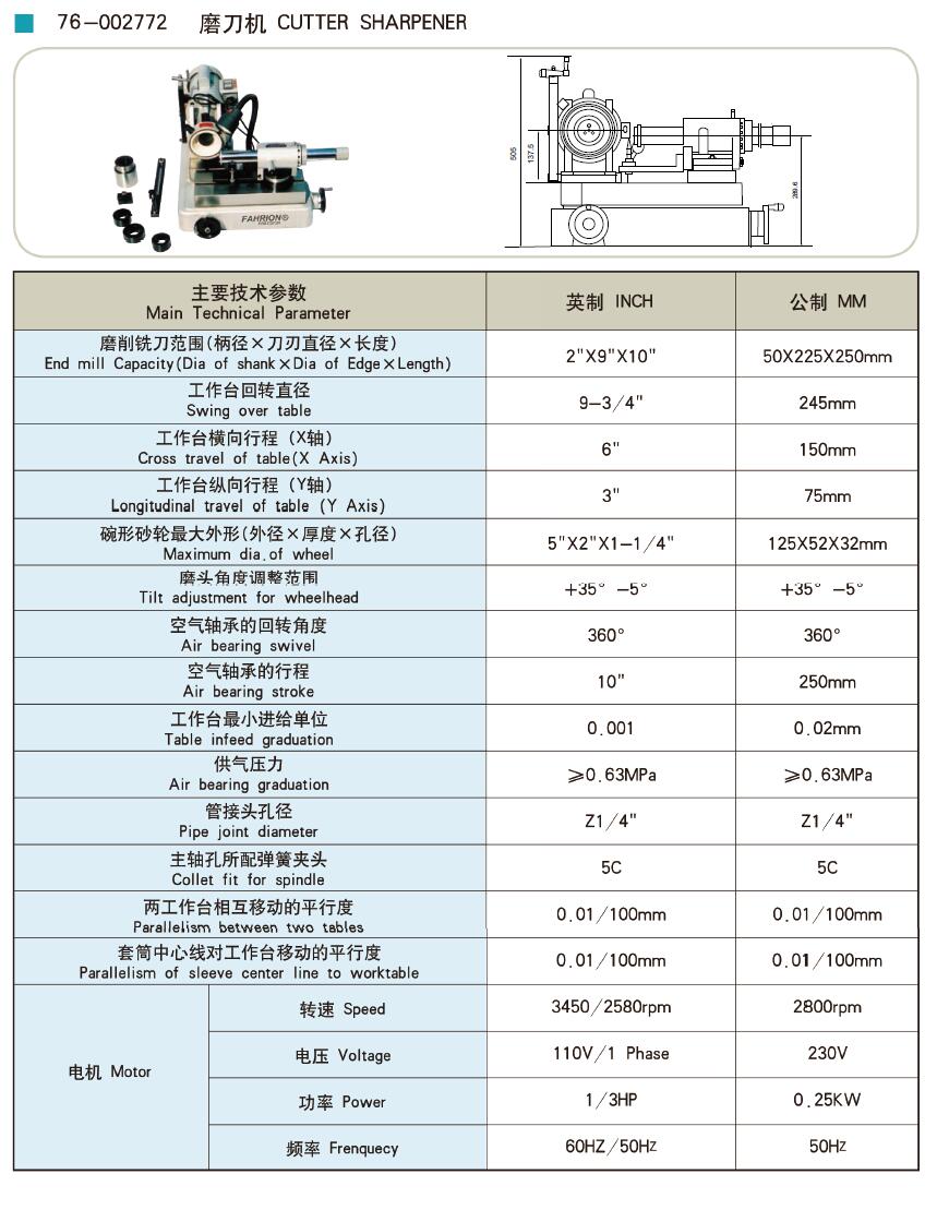 磨削铣刀范围(柄径×刀刃直径×长度)End mill Capacity (Dia of shank×Dia of Edge×Length)