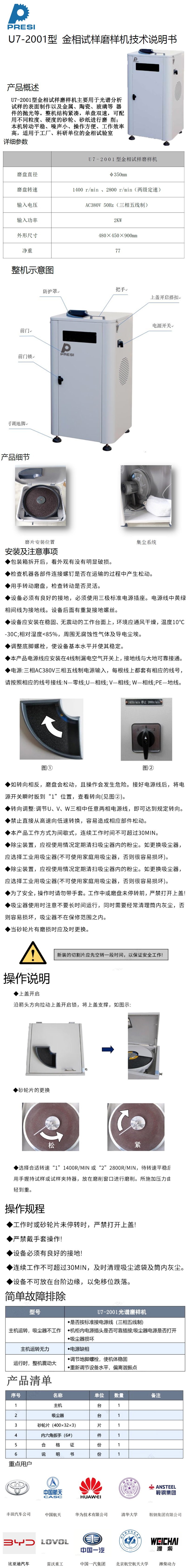 磨样机主要用于光谱分析试样的表面制作以及金属、陶瓷、玻璃等器件的抛光等。整机结构紧凑,单盘双速,可配用不同粒度、硬度的砂轮片进行磨削;抛光是制备金相试样过程中的一道主要工序,本机转动平稳、噪声小、操作方便、工作效率高。适用于工厂、科研单位的金相试验室。