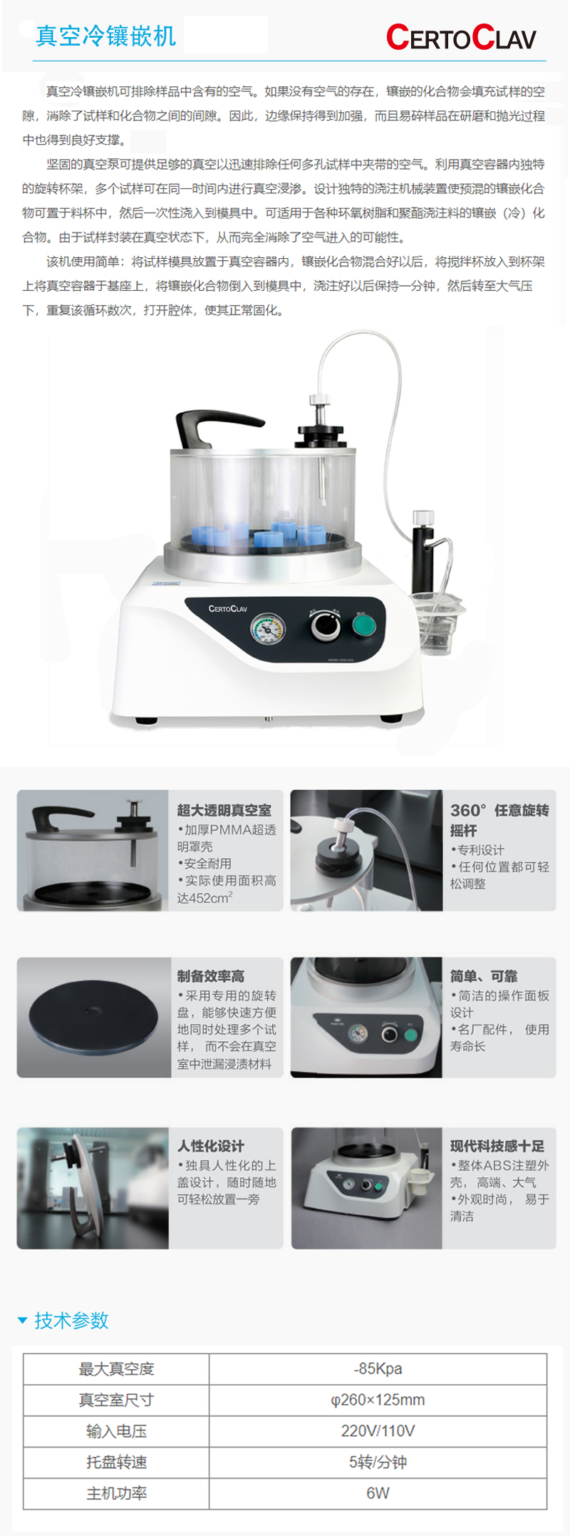 ·用于冷镶嵌,分别对样品和镶嵌料抽真空