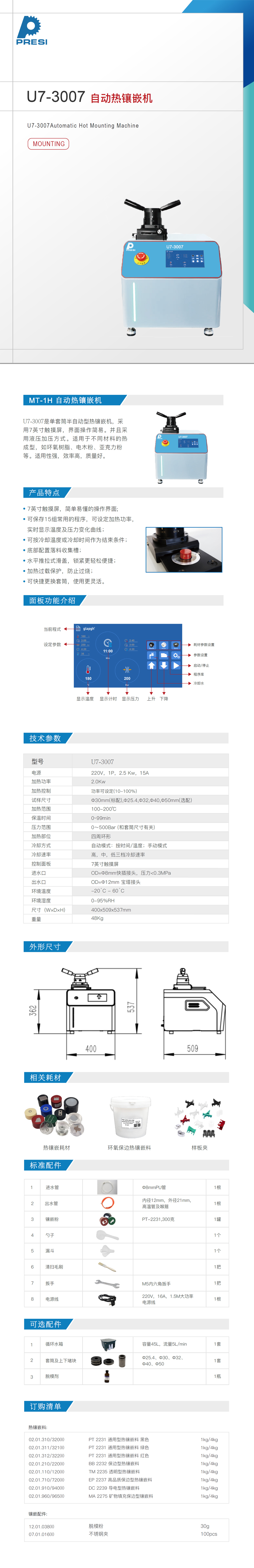 (1)采用主流7寸大屏,便于操控;(2)自动水冷,多种模式,制样效率更高;(3)实时监测制作过程,大视野大按键,简捷清爽;(4)桌面快捷工艺配方,一键参数设置;(5)推拉滑盖结构,准确定位,手感舒适;(6)过热过载异常保护,确保人机安全。