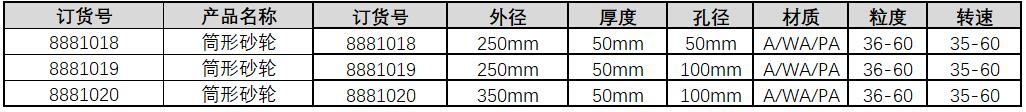 订货号 制造商型号 外径 孔径 宽度 壁厚 最高转速 粒度 材质 价格 购物车