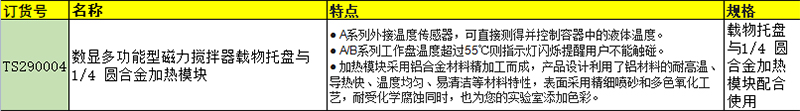 规格:  载物托盘与1/4 圆合金加热模块配合使用 制造商型号:  TS290004