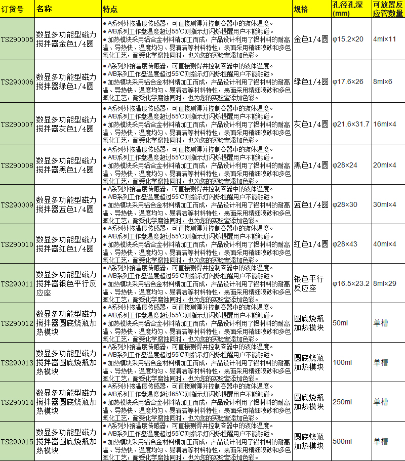 订货号 制造商型号 配件类型 孔径孔深 可放置反应管数量 价格 购物车