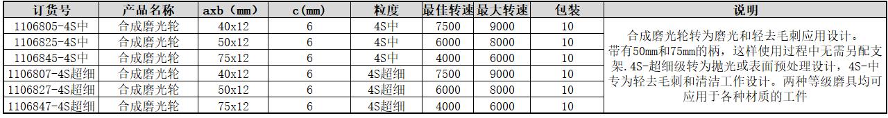 ·带有50mm和75mm的柄,这样使用过程中无需另配支架.4S-超细级转为抛光或表面预处理设计,4S-中专为轻去毛刺和清洁工作设计。两种等级磨具均可应用于各种材质的工件