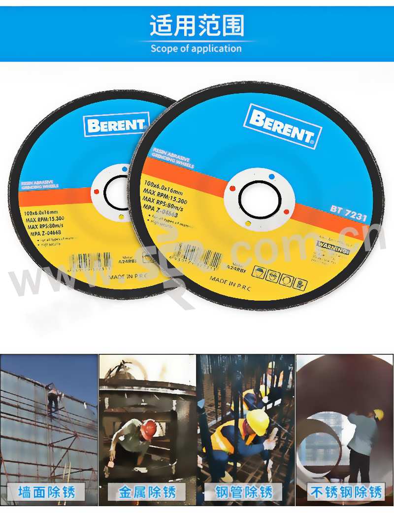 BERENT/百锐 树脂砂轮磨片 BT7232 100×4×16mm 1片