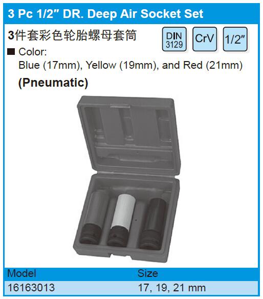 3 Pc 1/2″ DR. Deep Air Socket Set