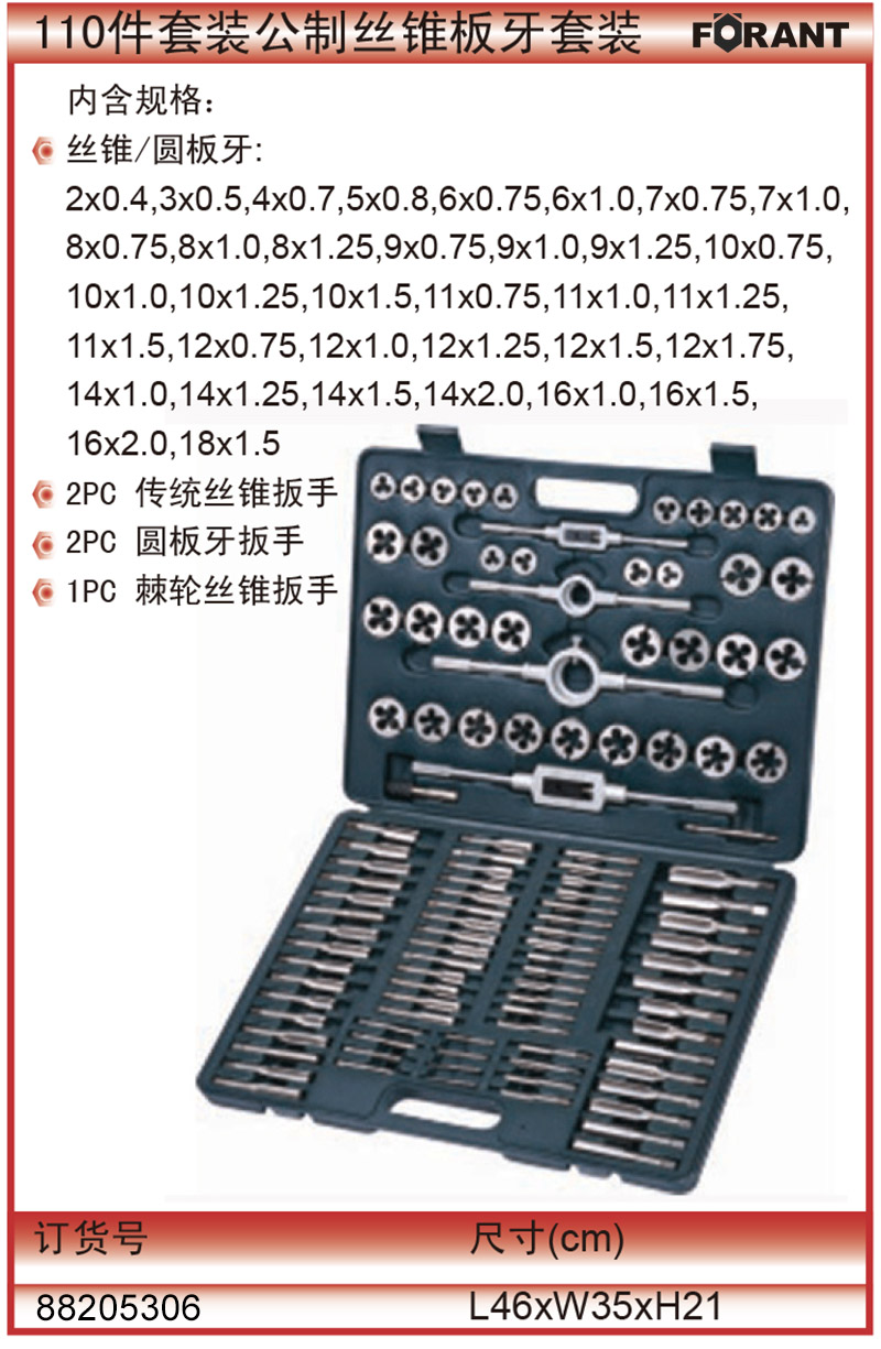 12×1.0,12×1.25,12×1.5,12×1.75,14×1.0,14×1.25,14×1.5,14×2.0,16×1.0,16×1.5,16×2.0,18×1.5