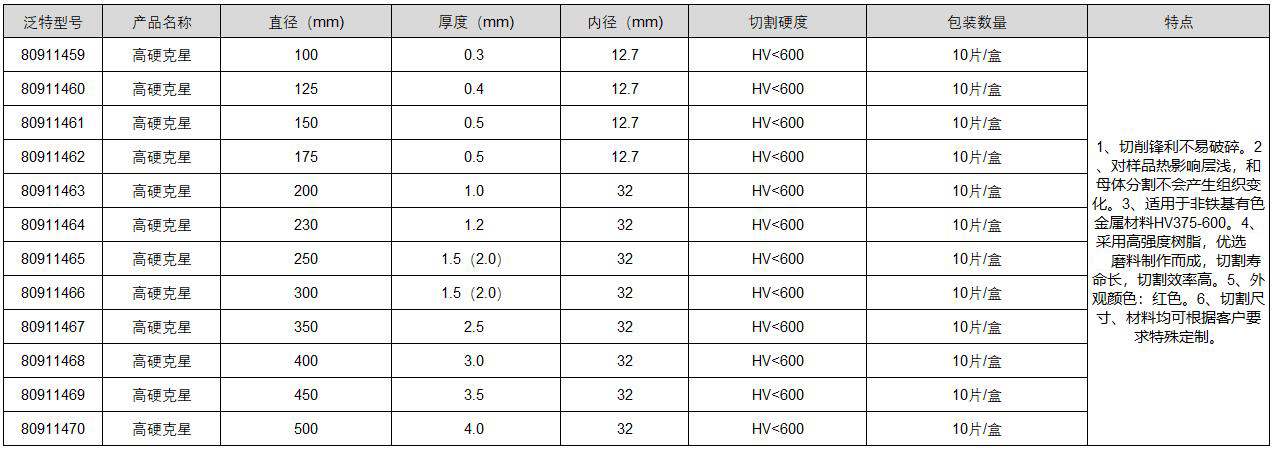 ·采用高强度树脂,优选特质磨料制作而成,切割寿命长,切割效率高。