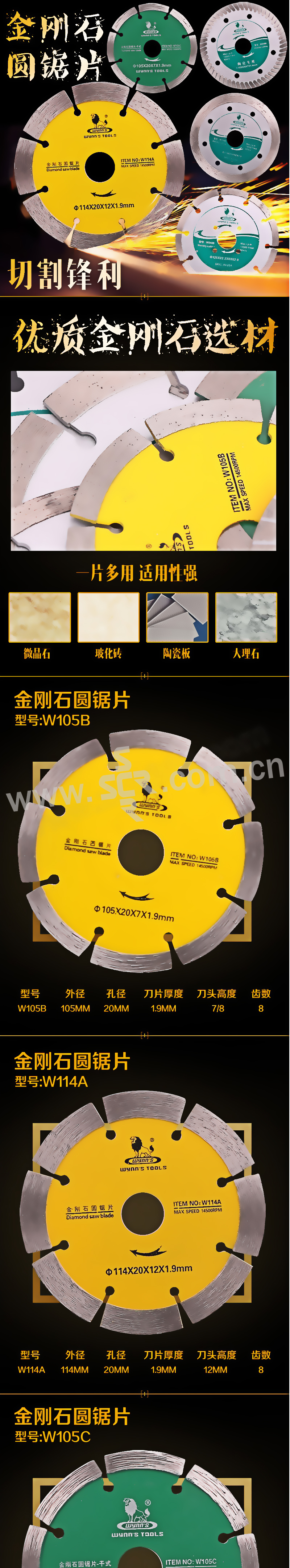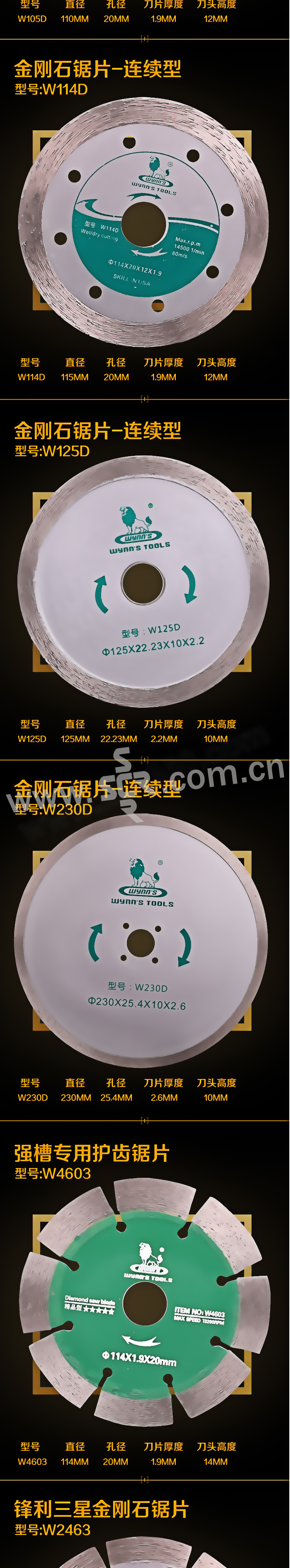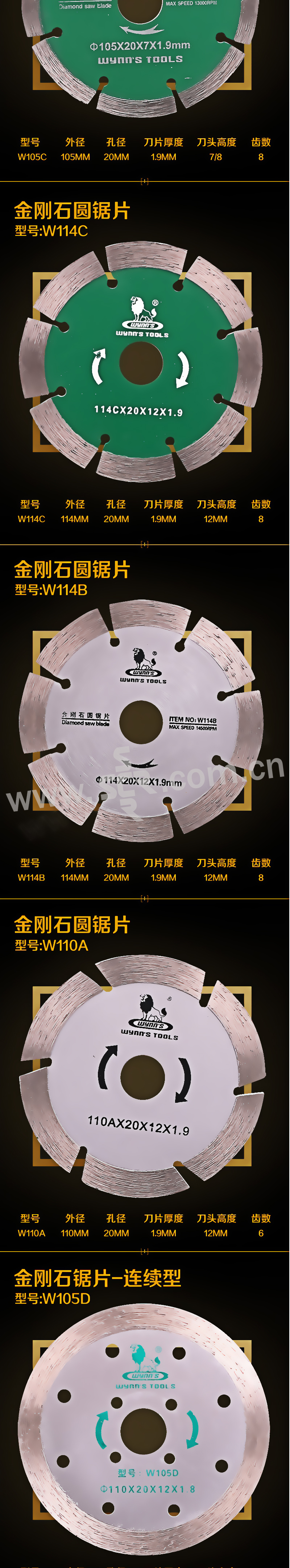 WYNNS/威力狮 金刚石开槽切割圆锯片 W114A 金色 1片