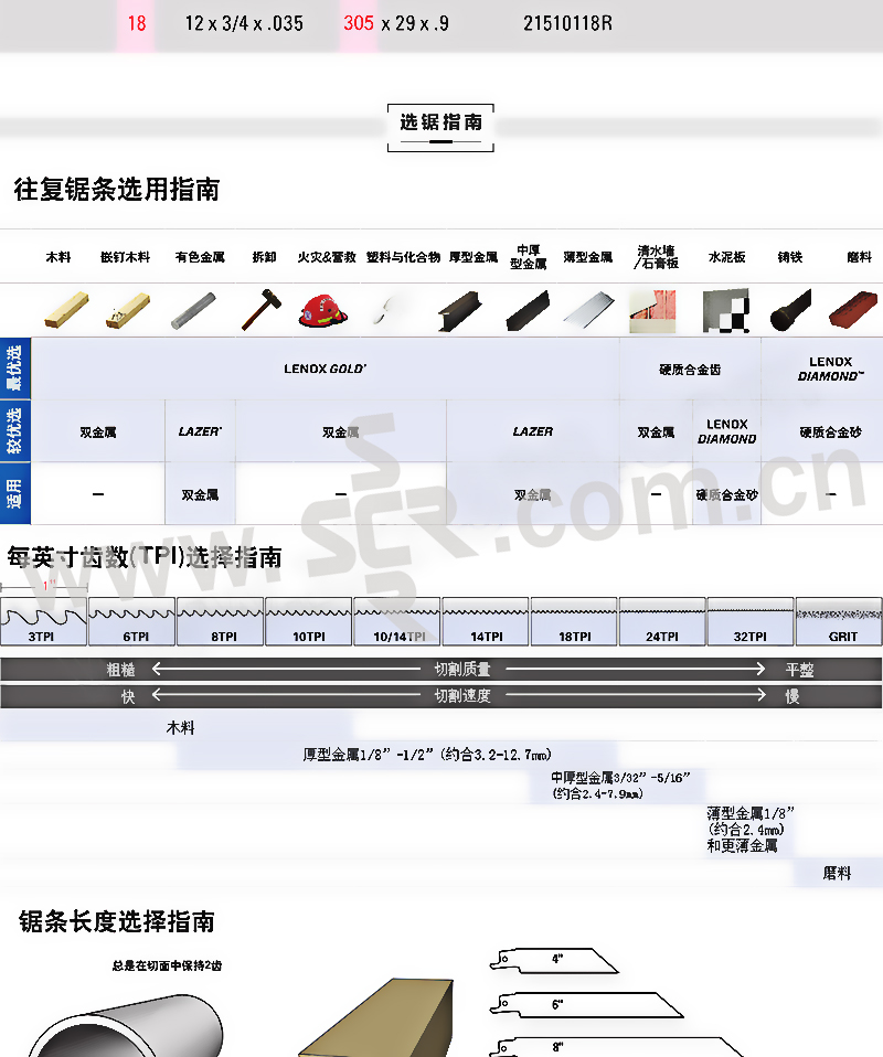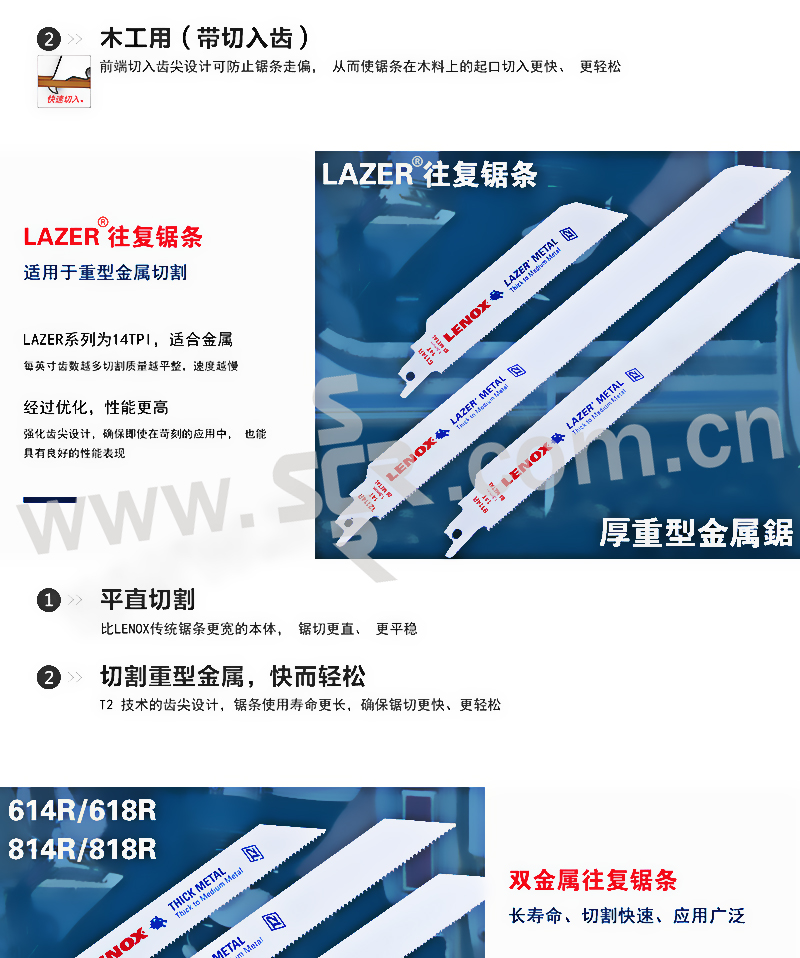 LENOX/雷诺克斯 进口双金属往复锯片 818R金属切割 8" 200×19mm 1条