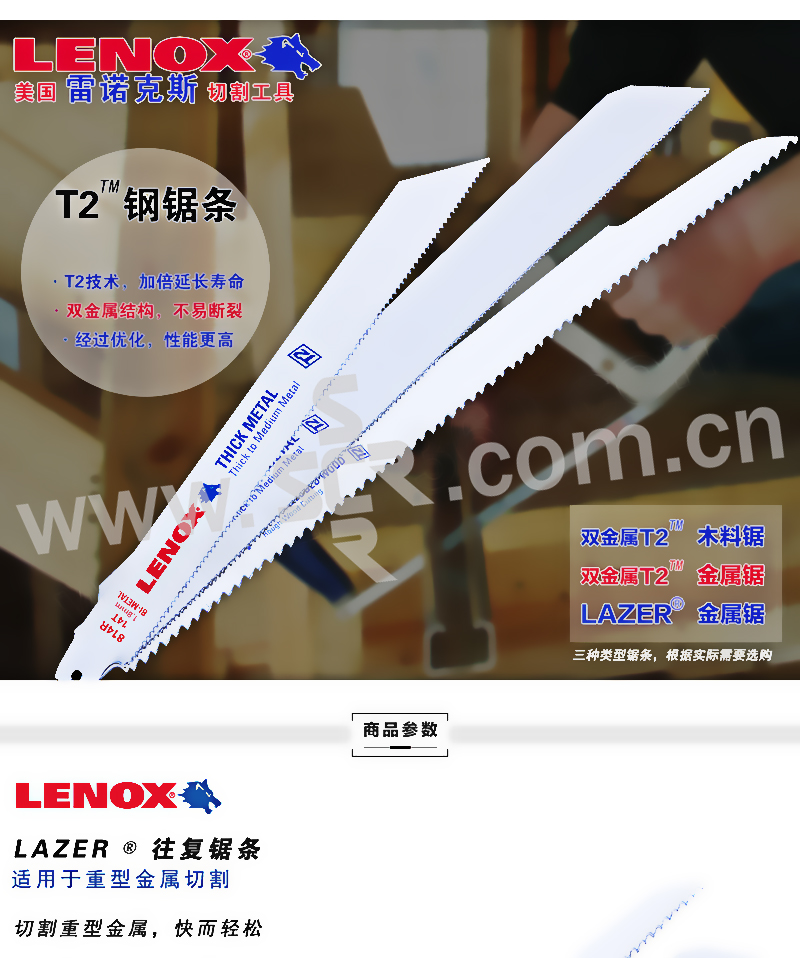 LENOX/雷诺克斯 进口双金属LAZER往复锯片 12114R厚金属切割 12" 300×25mm 1条