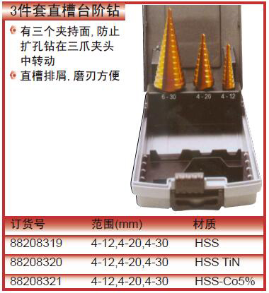 3件套高速钢镀钛直槽台阶钻